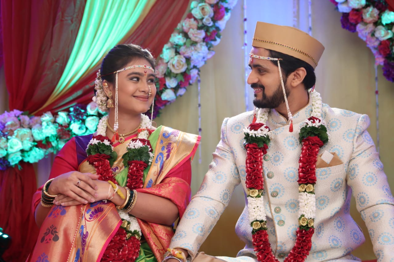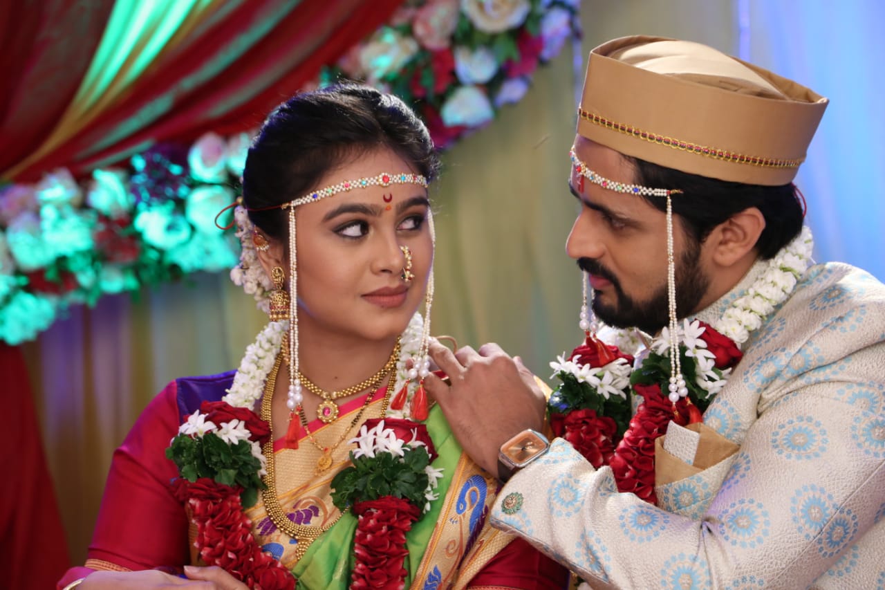 लग्न म्हणजे जन्मभराचे ऋणानुबंध… प्रत्येक मुलीच्या आयुष्यातील अत्यंत महत्वाचा क्षण… आपल्या कुटुंबाला मागे सोडून नवर्याच्या घरी मुलगी जाते ती फक्त आपल्या जोडीदारावर असलेल्या विश्वास आणि प्रेमाखतर… लग्नानंतर मुलीचे आयुष्य संपूर्णपणे बदलून जाते… सुखाच्या सरींनी हे मन बावरे मालिकेमध्ये अनु तिच्या भूतकाळातील सगळ्या आठवणी, अवीबरोबरचे नाते मागे ठेऊन सिद्धार्थच्या प्रेमाखातर लग्नासाठी होकार देते… सिद्धार्थला मिळणार आहे अनुची साथ… मालिकेमध्ये या दोघांच्या आयुष्यात आता सुखाच्या सरी येणार हे नक्की ! लग्नात सगळ्या विधी पार पडल्या जाणार आहेत सप्तपदी, मंगलाष्टक, सुनमुख… नऊवारी साडी, चंद्रकोर, हिरवा चुडा, मंगळसूत्र या लुकमध्ये अनु खूप सुंदर दिसत आहे… इतक्या दिवसांनंतर या दोघांच्या आयुष्यात आलेला आनंद सान्वी दुर्गाच्या मदतीने भंग करण्याचा प्रयत्न करणार नाही हे अशक्यच ! सिद्धार्थ आणि अनुच्या या आनंदाच्या क्षणाला सान्वीची दृष्ट तर लागणार नाही ना ? सगळे सुरळीत सुरू असताना सान्वी आणि दुर्गा मिठाचा खडा यामध्ये नाही ना टाकणार ? सिद्धार्थ आणि अनुचे लग्न निर्विघ्नपणे पार पडेल ? सुरू होणार आहे सिद्धार्थ आणि अनुचा नवा प्रवास… नक्की बघा अनु – सिद्धार्थचा विवाह सोहळा “सुखाच्या सरींनी हे मन बावरे” मालिकेमध्ये सोम ते शनि रात्री ९.०० वा. आपल्या कलर्स मराठीवर.