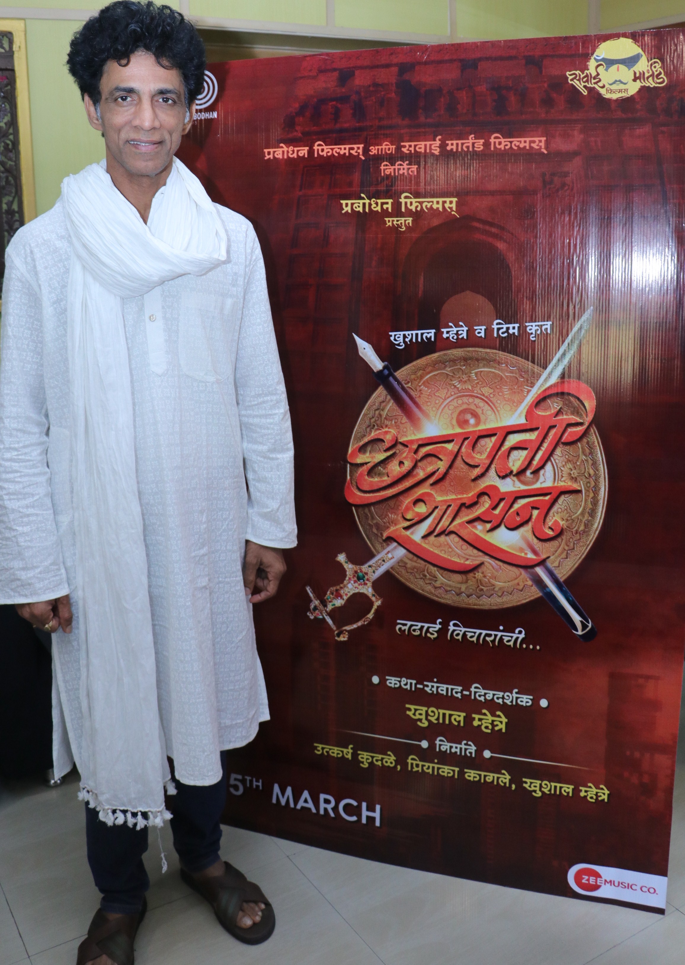 All four songs in the film are of different kinds. Remarkably, music of each song in the film is directed by a different music director. A very inspiring and energetic ballad ‘Shivba Chhatrapati’ is sung, written and music directed by Nandesh Umap. Item song ‘Mishiwala Pahuna‘ is sung in the amazing voice of Janhavi Prabhu-Arora and directed by Rohit Nagbhide. Both songs are penned down by Dr. Vinayak Pawar. Splendid Lavani ‘Vadhiv Distay Rao’ in the spicy rural voice of singer Urmila Dhangar, is written by Deepak Gaikwad and music composed by Sachin Avghade. Striking feature of this Lavani is that, this Lavani is performed by a male artist donning a female costume. Song which weaves around the story of the film and adds spice into it, ‘Mard Marathyacha Por’… is sung, written and music directed by Abhijit Jadhav and Rajan Sarvade. Actor Makarand Deshpande while speaking about the film said that, “There have been many films on the life of Shivaji Maharaj. This is the first experience for me. My role as Professor Samar in the film presents the ideology of Shivaji Maharaj. Today’s youth needs more convincing than imposing, which the film Chhatrapati Shasan exactly does.” The cast of the film also includes actors Santosh Juvekar, Kishore Kadam, Abhijit Chavhan, Prashant Mohite, Anil Nagarkar, Sayali Kale, Prathamesh Joshi, Shreyaschandra Gaikwad, Vishnu Kedar, Parag Shah, Abhay Mishra, Dhanashree Yadav, Kiran Kore, Rahul Belapurkar, Sayali Paradkar, Ramchandra Dhumal, Milind Jadhav and Jaydeep Shinde. The film also features child actors Shrisha Mhetre, Romit Bhujabal, Rajvardhan Dhusanis and Reva Jain. The film is directed by Khushal Mhetre and he himself has written the story and dialogues, while the script is written by Kamalesh Bhandwalkar. Filming is done by Sunil Borkar, Nishant Bhagwat and Yogesh Koli, while the editing is done by Chetan Sagade, Art direction by Nitesh Nadgaonkar and Anand Sathe, costumes by Prathamesh Mandhare, set design by Pinto Kolhapure and dance direction is done by Bhakti Naik.