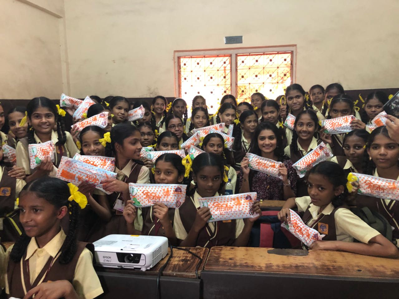 On the occasion of Women’s Day popular Marathi actress Hruta Durgule recently visited a school in Malad to create the awareness of menstrual hygiene for the young girls. In this 21st century we have progressed so much but still talking about menstrual cycle or hygiene is considered a taboo. This lack of open communication and proper guidance often results in negative ways for the unaware girls. We need to accept this that it is the most integral and important part of any woman’s life. In those 4-5 days that girl / woman has to go through the physical pain, mental stress, hormonal changes, many things. In this period the hygiene is very important. When young girls enter this process for the first time they should be properly guided about all the things. Recently when Bollywood super star Akshay Kumar gave a beautiful message through his film Padman where he explained all these things in very beautiful way and helped creating awareness, many people got inspiration from him.
